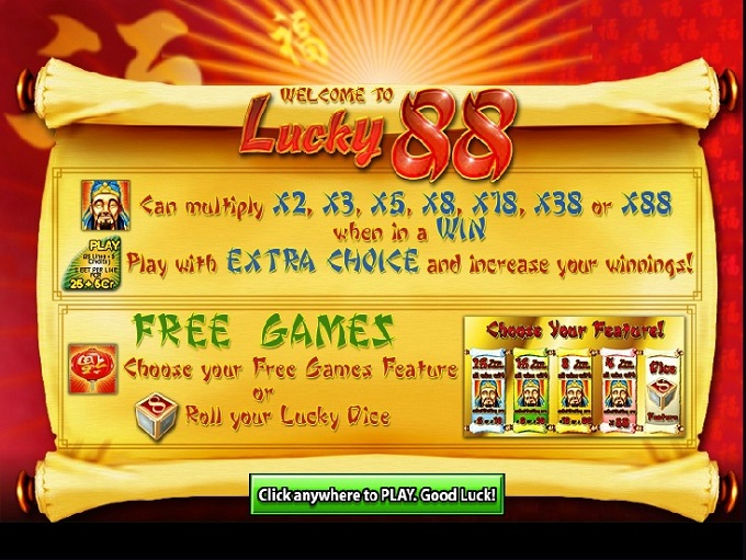 A 5 reel slot machine, Lucky 88 gets a total of 25 bet lines for you to bet on. There are free spins with huge multipliers inside, plus scatter symbols and wilds (with up to 88x multipliers). The game will give away payouts of up to $3,552.