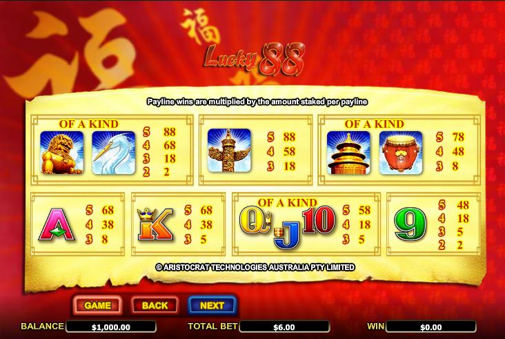 You will find Lucky 88 at any online casino which chooses to use software from Aristocrat, playable either for free or for real money.