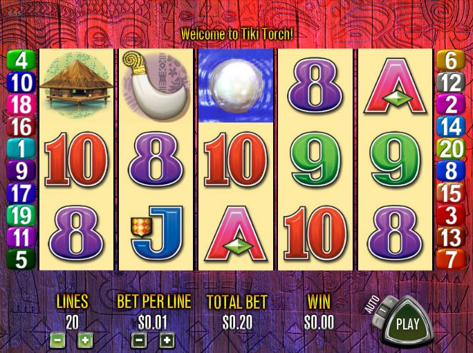 20 bet lines are placed on the 5 reels of Tiki Torch. The game also comes with free spins, scatter symbols and a wild. The largest prize mentioned by the paytable will give players $6,250.
