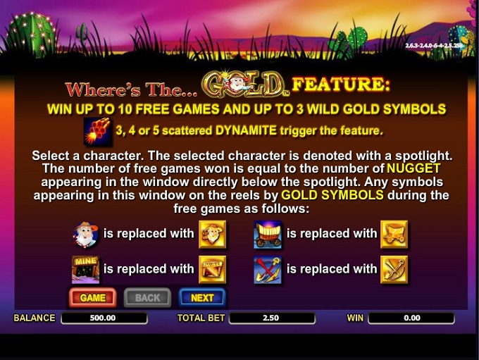 This Where’s The Gold slot is offered by all online casinos with Aristocrat software, playable either in practice or in real money mode.