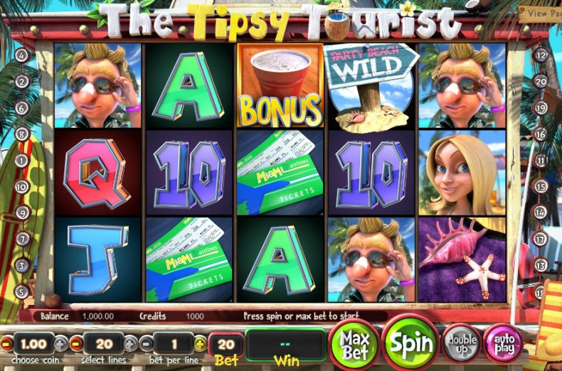 20 bet lines are used on the 5 reels that The Tipsy Tourist holds. Drinking bonus rounds, free spins, scatters and wilds will all work to make this a fun game. Prizes reach a top value of just $1,750 though.