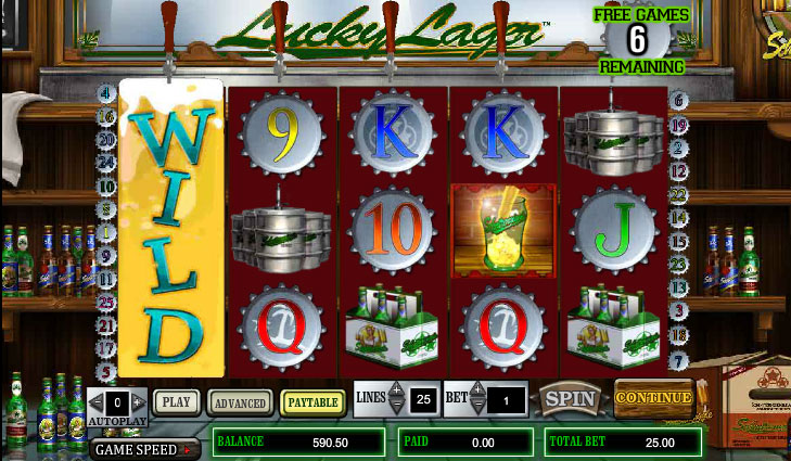 5 reels are present in Lucky Lager, a game with as many as 25 paylines active. Wilds, bonus features, scatters and free spins will entertain you along the way, while you try to win the $7,500 top jackpot.