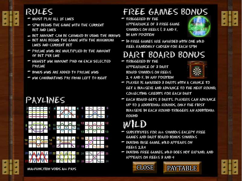 The final feature would be the bonus game, centered around a popular past time in pubs around the world. It’s a game of darts, started with three Dart Board scatters present on the 2nd, 4th and 5th reels during the same round.