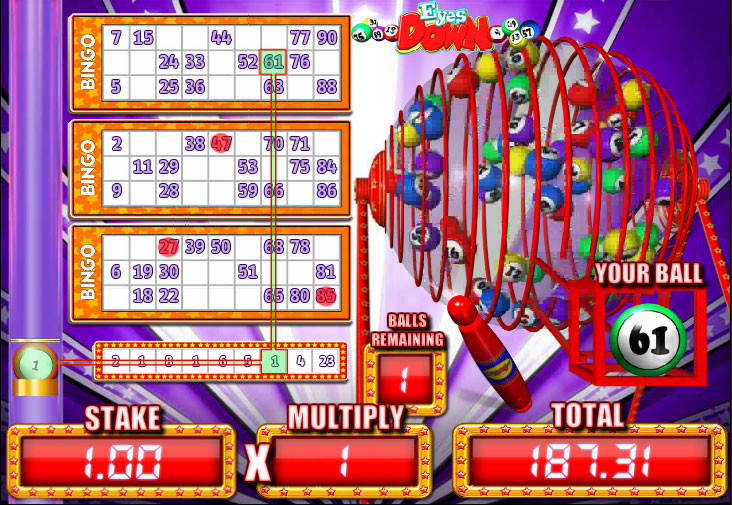 Some interesting features were introduced in Eyes Down, including a Bingo themed bonus game, free spins and multipliers, scatters and wilds. All in all, it’s a good mix of features.