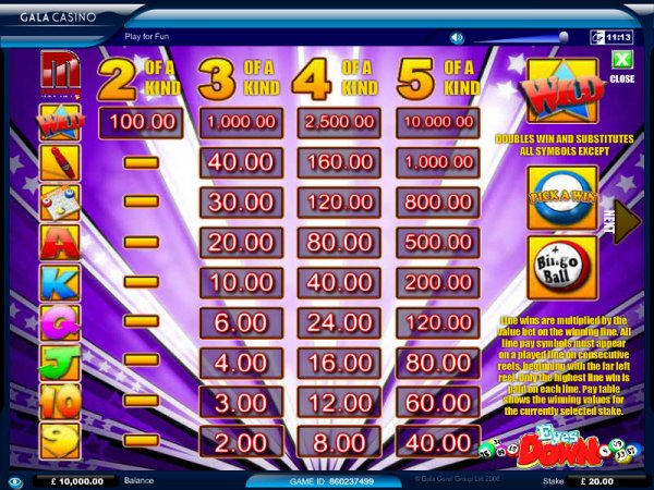 The features of Eyes Down might look interesting, but the implementation of the design leaves a lot to be desired. The game’s design looks dated, with poker cards that look standard and with a couple of Bingo items that aren’t particularly well made either. Still, you should have no problem guessing that it’s a Bingo themed slot, not if you look at the surrounding graphics.