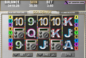 Goldbarz is one of the slot machines offered on IGT powered casinos, though it’s originally a NextGen title I believe. The game is themed around bank robberies, the inspiration coming from the gold bars that the safe crackers are supposedly after. There is a rather dated design unfortunately, plus a low number of paylines, so you get the idea quickly that it’s not going to be one of the more advanced titles you’ve ever played.