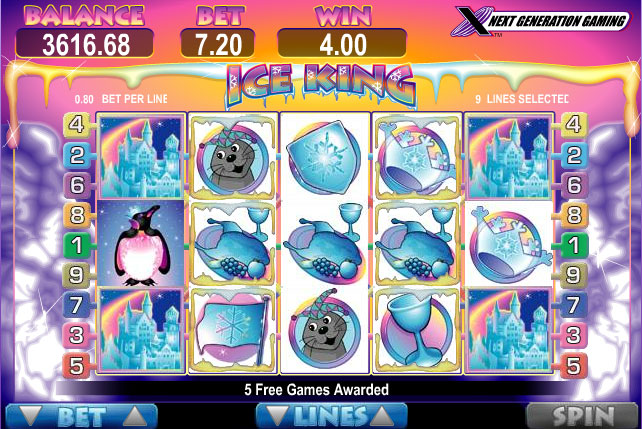 Ice King is an unusual game in more ways than one. It’s a title which uses a classic layout with only 3 reels, but holds a higher than average number of paylines, 9 of them being part of the slot. As for the theme which you will find in this game it is inspired by both ice and by medieval kings. A penguin wears the crown of a king here, with symbols featuring many objects made out of ice which are typical for medieval slots. The game was created by NextGen, but not it is offered by IGT as well.