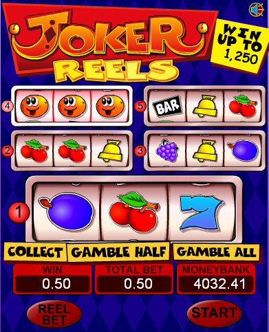 Joker-ReelsIf you only look at the numbers, you’re going to expect a pretty normal classic slot machine. While it does have 3 reels and 5 lines, the way the game looks makes it anything but ordinary. There are five separate sets of 3 reels here, each one having a single row of three symbols. The theme is the typical one though, involving all sorts of badly designed fruits and other classic icons. Joker Reels is a slot machine that is offered by IGT.