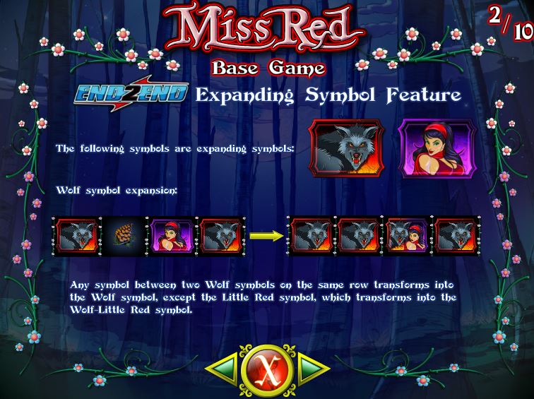Another thing that you rarely see in slot machines is this system, called End2End. It works with the Wolf and the Little Red icons only. Whenever you have two matching icons on the same horizontal line, they expand and all the symbols between them take the same role. That means that you can get three to five symbols with Wolves or Little Red in them, starting from just two initial symbols.
