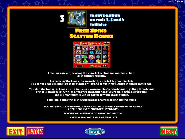 Retriggering this feature is possible, an extra 5 free spins being offered when the needed three symbols are present again.