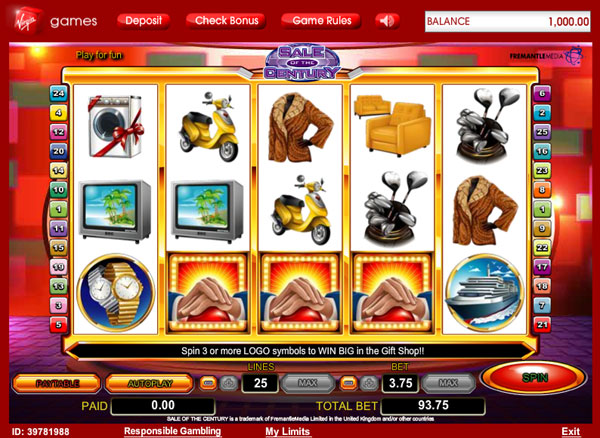 The reels of Sale of the Century host 1 to 25 active lines per round. You get all sorts of cool features inside, among them being scatters, wilds, bonus features, super picks and instant wins. There is also the chance that you will win a prize of up to $18,750.