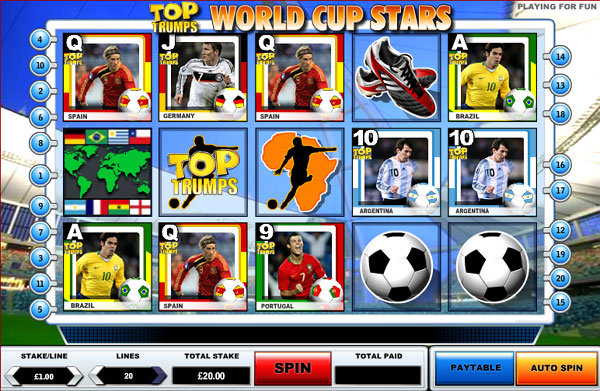 The Top Trumps World Cup Stars slot machine is offered through the IGT platform, so if you want to play it for real or just to practice, look out for casinos that use it.