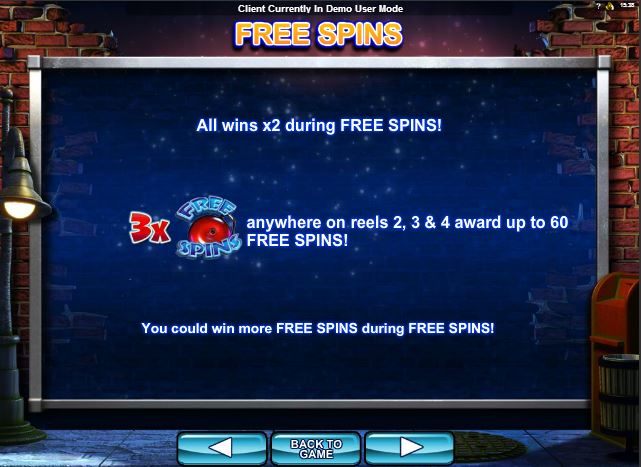 The symbol with Free Spins is easy to recognize, as those two words are placed on the top and bottom sides of an alarm. Appearing on the 2nd, 3rd and 4th reels, the Alarm will trigger as many as 60 free spins. You need the scatter symbol which will do this on all three reels where it is allowed. All the wins you get from the free spins have 2x multipliers, so you can expect double the usual prizes from them.