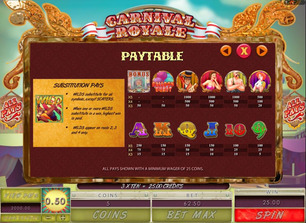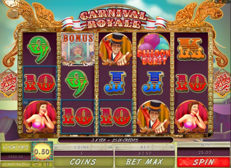 This Carnivale Royale slot is offered by all online casinos with Microgaming software, playable either in practice or in real money mode.