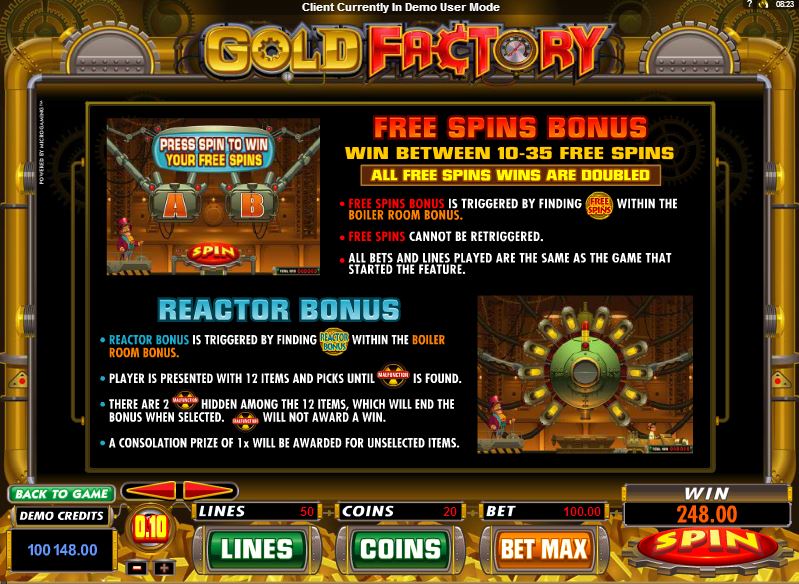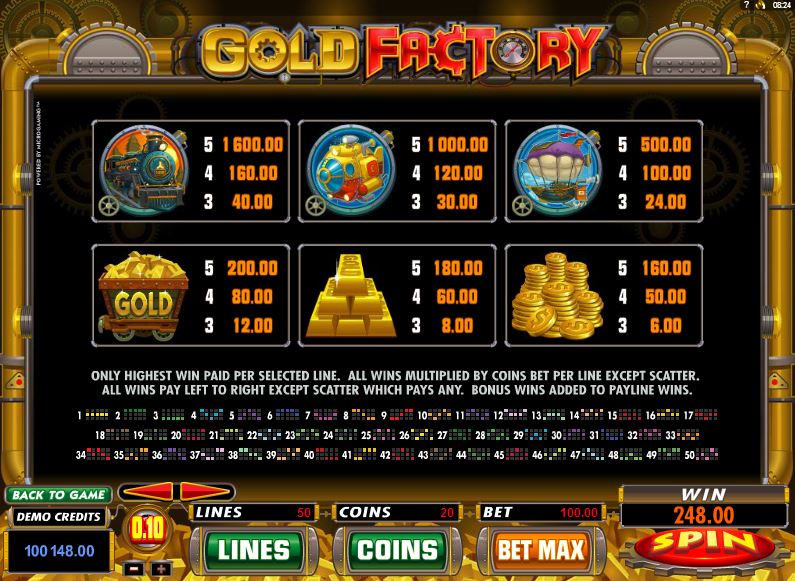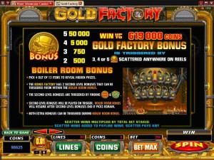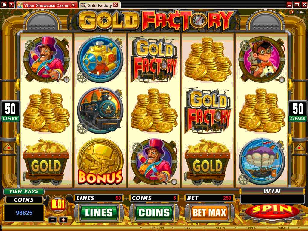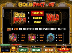 The Gold Factory slot machine is offered through the Microgaming platform, so if you want to play it for real or just to practice, look out for casinos that use it.