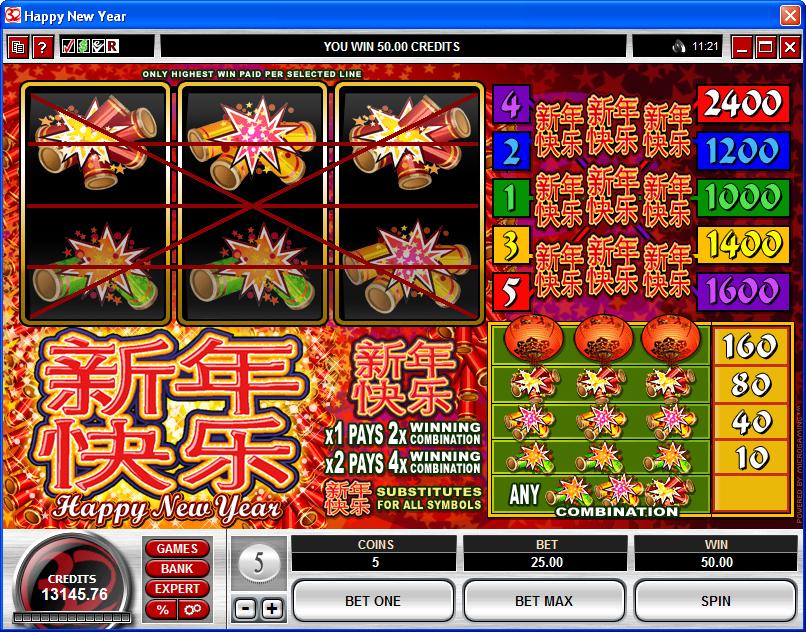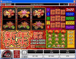 With Happy New Year, you’re going to find a slot machine created by Microgaming, which is themed around the Chinese New Year holiday, a festivity that is marked by an impressive quantity of explosives in the form of fireworks and firecrackers. These make up most of the symbols on the reels of this game, along with some other Chinese inspired images. It’s unusual for a classic slot machine, so at least it has that going for it.