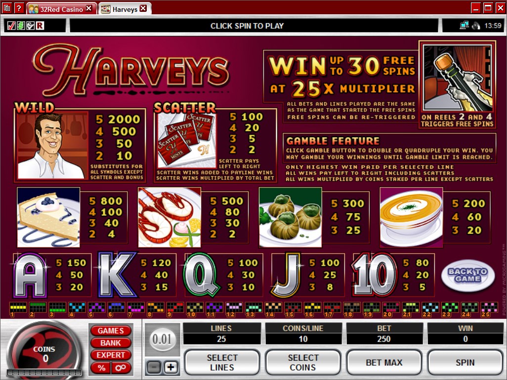 This Harveys slot is offered by all online casinos with Microgaming software, playable either in practice or in real money mode.