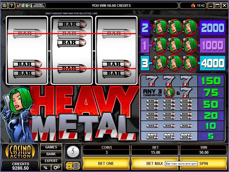 The Heavy Metal slot machine is offered through the Microgaming platform, so if you want to play it for real or just to practice, look out for casinos that use it.