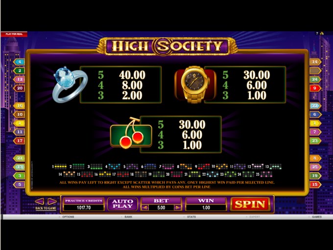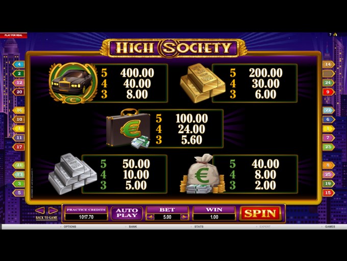This High Society slot is offered by all online casinos with Microgaming software, playable either in practice or in real money mode.