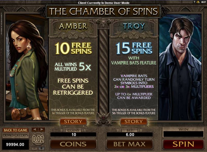 The Immortal Romance Logo is your typical modern slot machine wild symbol. It will give away its own prizes, and you can also count on it being a substitute for other symbols, plus it will multiply the wins by 2x, doubling their value. The only symbol that doesn’t get help from the wild is the scatter.