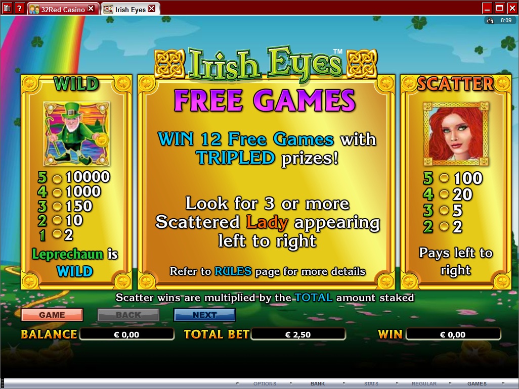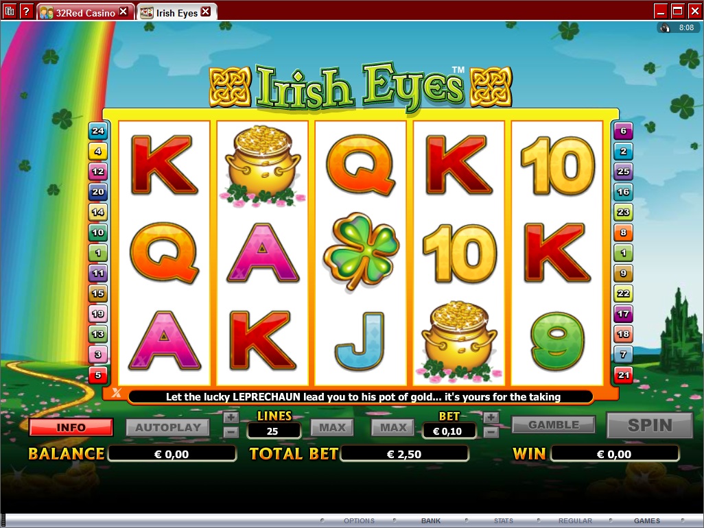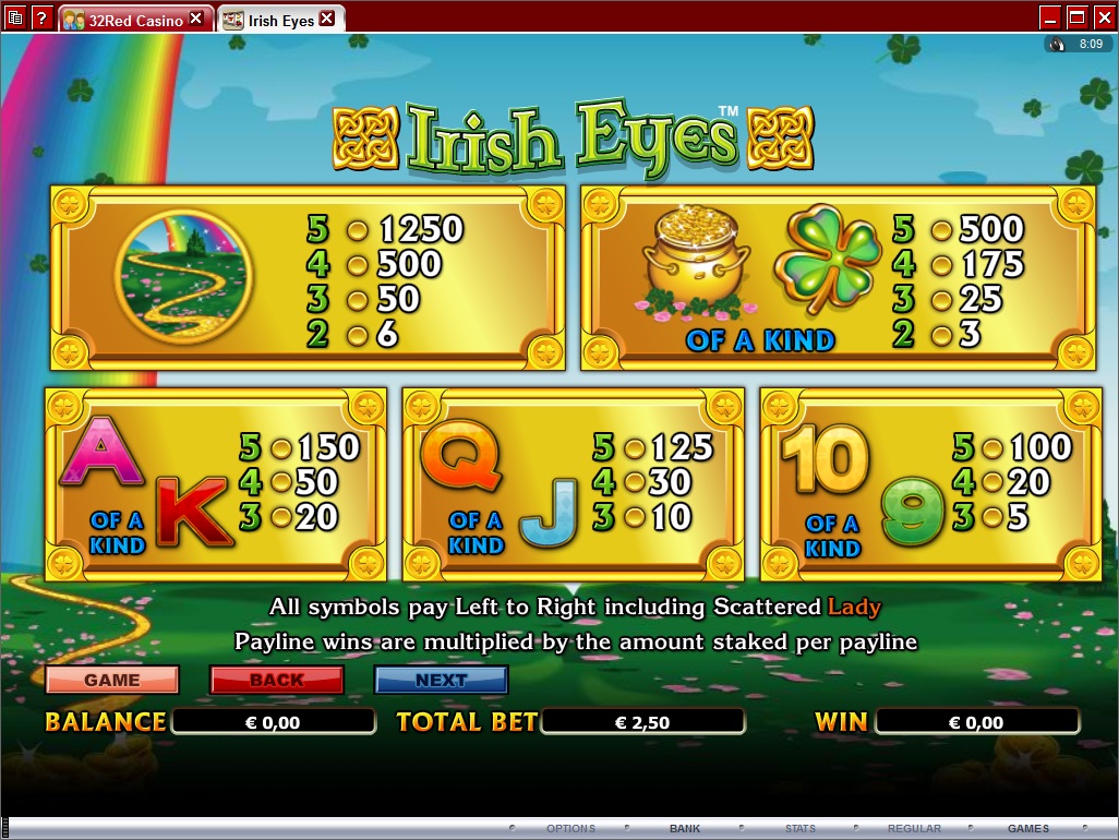 You will find Irish Eyes at any online casino which chooses to use software from Microgaming, playable either for free or for real money.