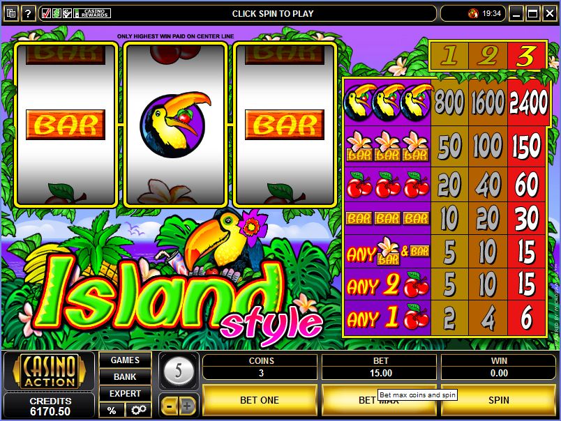 You will find Island Style at any online casino which chooses to use software from Microgaming, playable either for free or for real money.