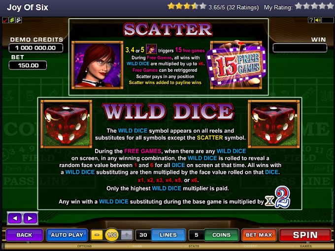 Among the features that players will discover in Joy of Six there is the Wild Dice, the scatter symbol, multipliers that can get quite high and free spins. All the features look like standard choices, but that doesn’t make them bad.