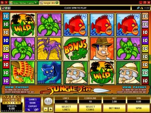 Jungle-JimJungle Jim is a jungle themed slot machine, where the action revolves around a treasure seeking hero, an expert in the ways of the jungle and on how you should deal with the many dangerous animals that you can find once you enter such a forest. It’s a cartoon style game, with plenty of likeable characters and with lots of dangerous creatures as well, the game trying its hardest to show you all the things that could go wrong once you enter the jungle. It comes from Microgaming, and it seems to do its job of entertaining the player quite well.
