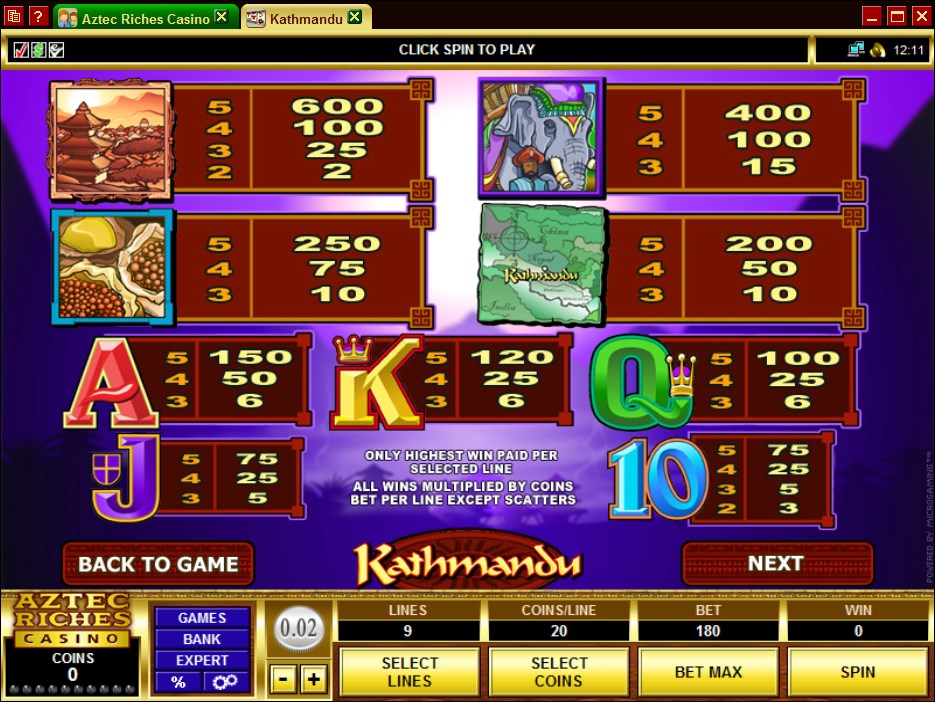 The Kathmandu slot machine is offered through the Microgaming platform, so if you want to play it for real or just to practice, look out for casinos that use it.