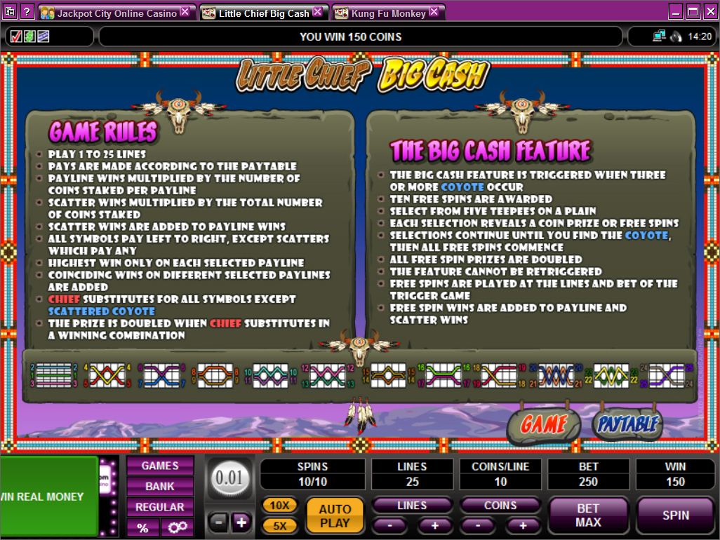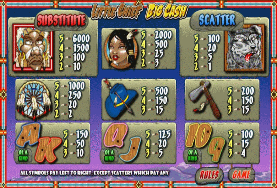 The Little Chief, Big Cash slot machine is offered through the Microgaming platform, so if you want to play it for real or just to practice, look out for casinos that use it.