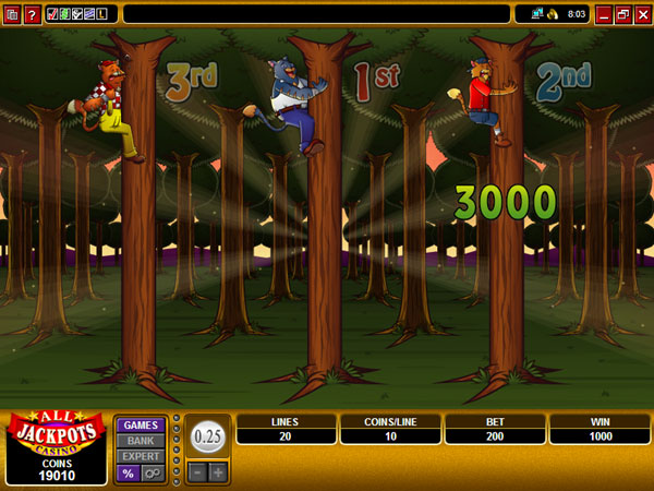 You choose one of the three cats that will try to climb trees. Depending on how well your cat does, you get a smaller or bigger prize from this feature.