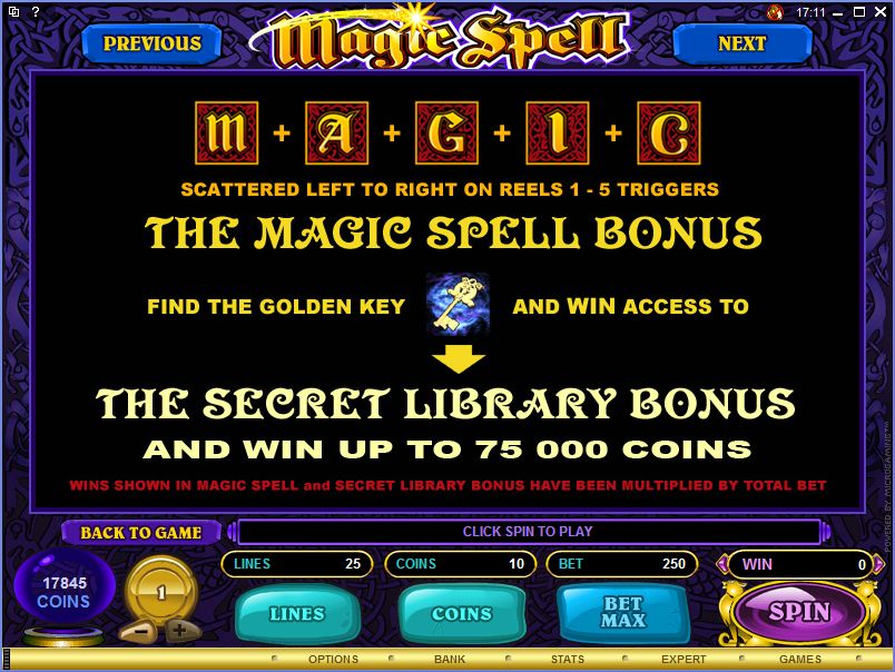 The bonus game requires that certain symbols with letters on them are arranged on the five reels of the game. The five letters are M+A+G+I+C, and yes, that spells MAGIC. When this happens, you get the bonus game to trigger.