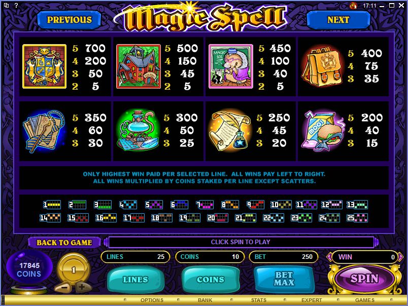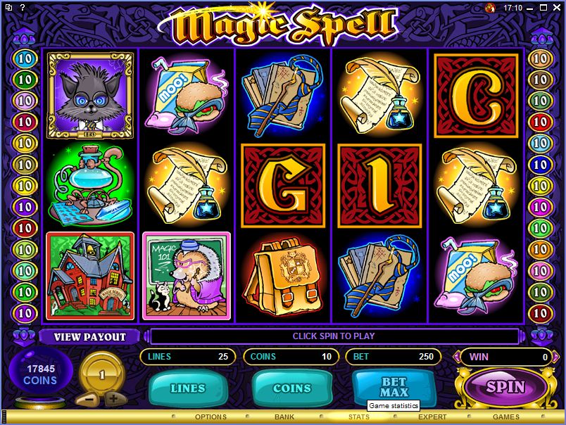 Microgaming gives us in Magic Spell a slot machine that seems to be themed around some kind of school for magic, with teachers, students, books and lunch packages being all used as symbols, among other things. The characters in it are not humans, animals being preferred instead, with cats being the majority in the school. I’m not terribly impressed by the actual design, but I’ll give the slot points for creativity in the choice of theme.