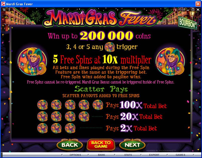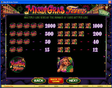 You will find Mardi Gras Fever at any online casino which chooses to use software from Microgaming, playable either for free or for real money.