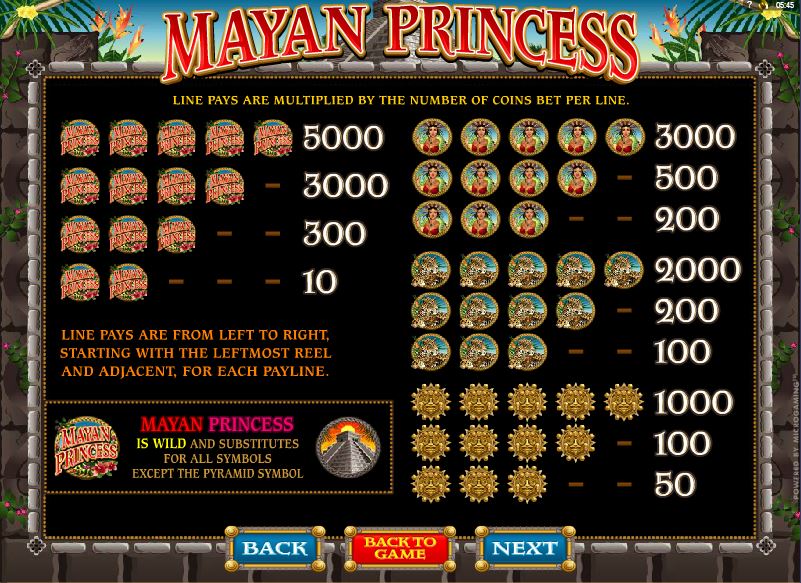 The Mayan Princess slot machine is offered through the Microgaming platform, so if you want to play it for real or just to practice, look out for casinos that use it.