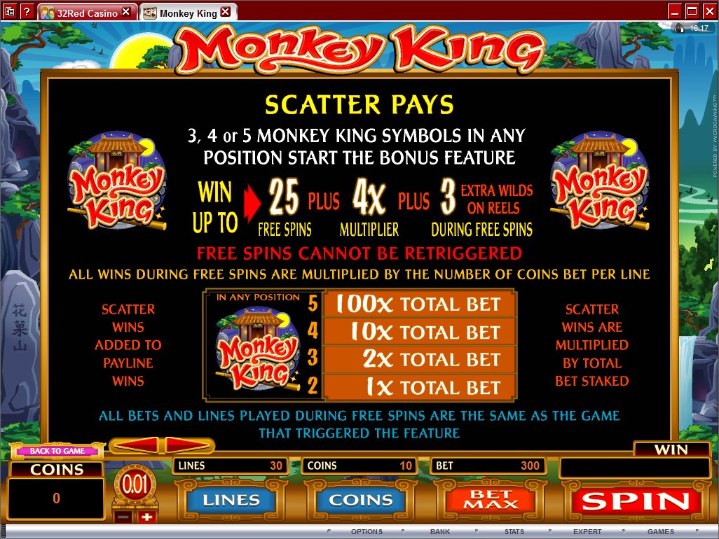 The Monkey King slot machine is offered through the Microgaming platform, so if you want to play it for real or just to practice, look out for casinos that use it.
