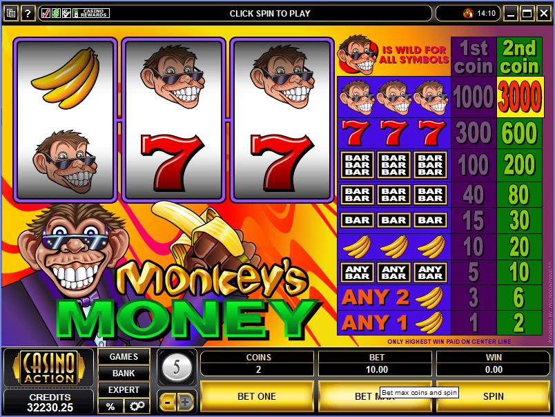 You will find Monkey’s Money at any online casino which chooses to use software from Microgaming, playable either for free or for real money.