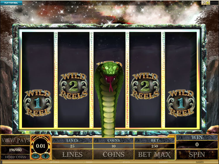 Before each round of the free spins, you are taken to a screen with five snakes. You pick one of them and you find out next how many of the reels will be wild in the next round. As many as four wild reels can be used by the game in each spin. The randomly chosen reels are picked from the 2nd to 5th reel range.