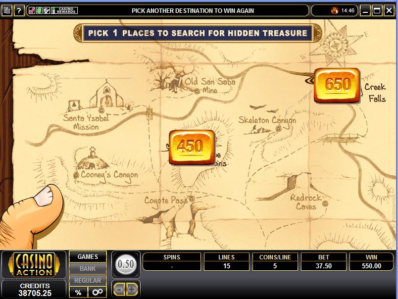 It’s a simple bonus feature, where you pick locations on the treasure map and you get paid between 30x and 1,000x the line bet by each one. The number of picks depends on how many symbols triggered the feature.