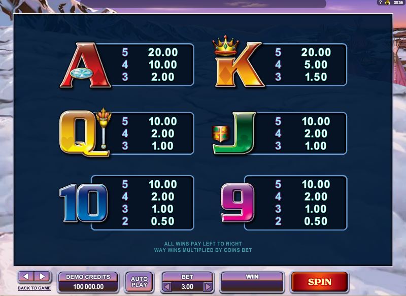 You use 30 to 150 coins in this game, always covering the 243 ways to win. 1 to 5 coins are selected for each line, while denominations range from $0.01 to $0.20. The maximum bet is worth $30, using $1 line bets.