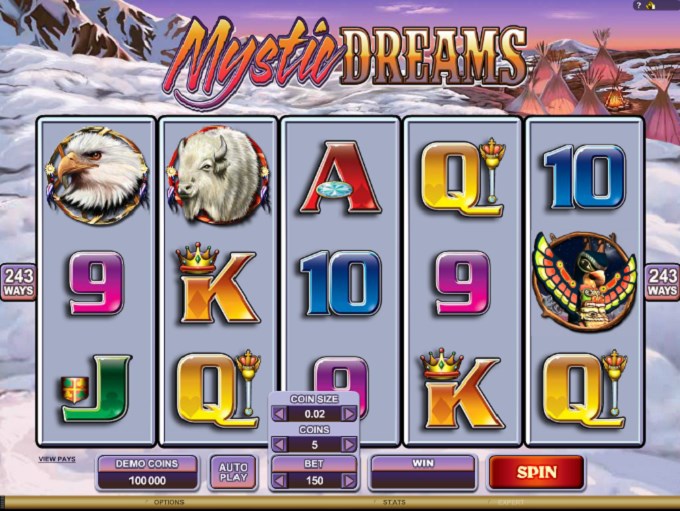 Among the features of Mystic Dreams you will find a Tee Pee with the role of a wild, an Eagle Totem used as a scatter, plus some free spins and multipliers of 4x or less. The ways to win are also important to the way the game plays, bringing you lots of smaller wins since there are so many more chances to create a combo.