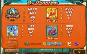 No Worries is a game dedicated to the Australian outback, to the wonderful animals that live there to be more specific, but the way that Microgaming approached this topic is slightly different than usual. The animals are shown pretty much as lazy bums, living a life without worries, sitting in hammocks and drinking beers, eating pizza and playing on their smartphones, among other things. It’s a very cool design actually, and the animal characters are quite loveable.