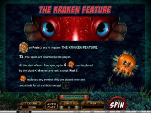 The feature awards 12 spins for free to the player. The Kraken that sits menacingly behind the reels will place as many as four wilds on the reels of the slot, at the beginning of each round. The only reel on which these wilds can’t be placed is the 3rd one.