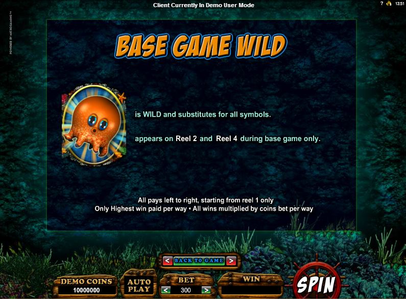 Baby Octopus wilds can substitute for almost all symbols, the Fish being the only exception. If the newly placed wilds can’t help you form a new combo, they will swim off the screen.