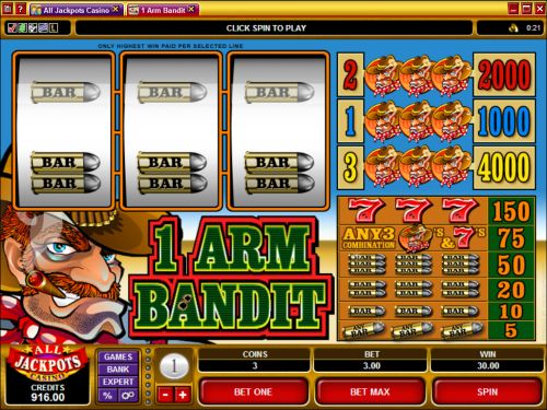 You will find One Armed Bandit at any online casino which chooses to use software from Microgaming, playable either for free or for real money.
