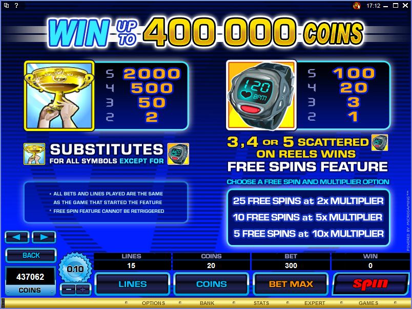 The Gold Trophy symbol is a worthy image to see on the symbol which awards the top jackpot and which acts as the wild feature at the same time. The jackpot is obtained when the wild occupies all five positions on the same active line, and it will give you 2,000x what the line wager was. As a wild, it will substitute for all other symbols, except for the smartwatch scatter.