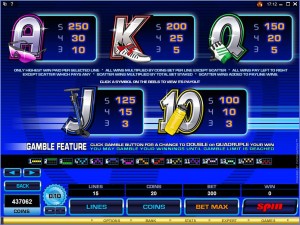 There are more coins in a line bet then there are cents in the coin’s denomination. The denomination goes up to $0.10, while the line bet uses up to 20 coins. With 15 lines in the game, you can use 300 coins total, with a value of $30.