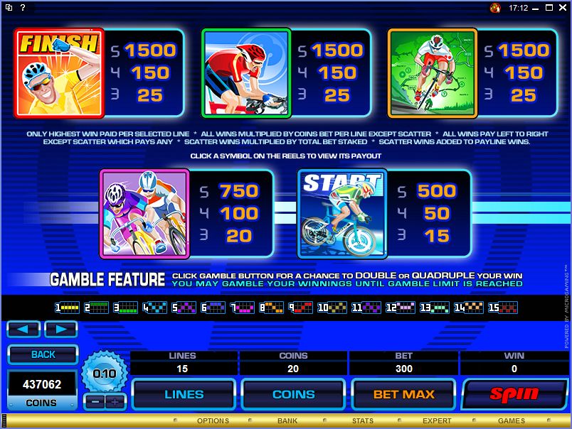 The Pedal Power slot machine is offered through the Microgaming platform, so if you want to play it for real or just to practice, look out for casinos that use it.