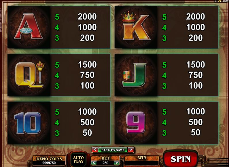 The scatter symbol is the one that awards the biggest prizes of the game, with 50,000 coins being on the line when you use the highest wager. Their value is only $12,500 though, since coins are worth $0.25.