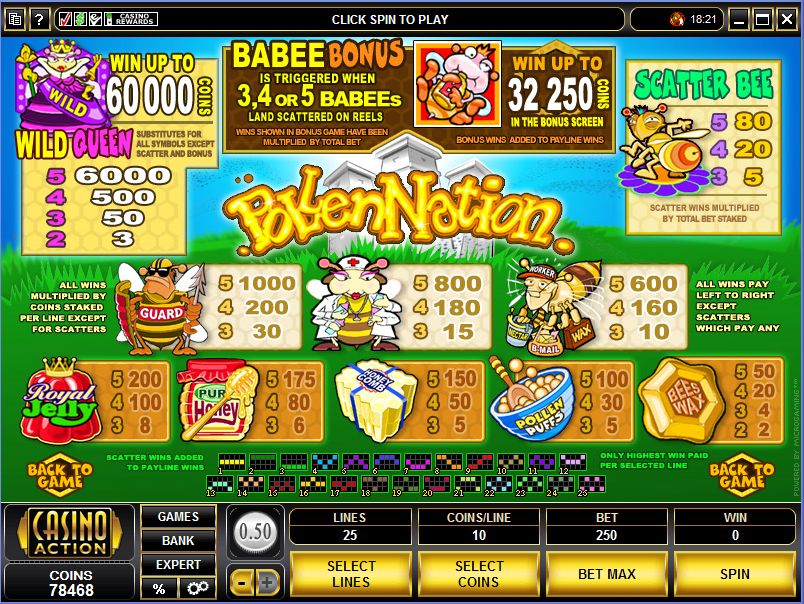 You will find Pollen Nation at any online casino which chooses to use software from Microgaming, playable either for free or for real money.